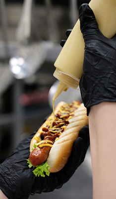 Salchicha premium, queso cheddar, cebolla crujiente y salsas a tu elección en un pan suave y ligero.
